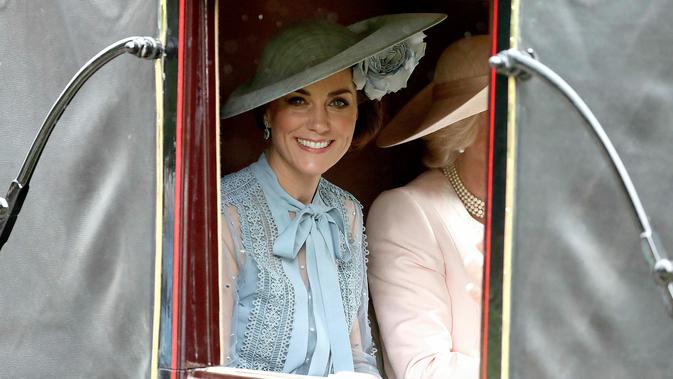 Duchess of Cambridge Kate Middleton tampil cantik dengan balutan gaun biru berlengan transparan dilengkapi topi atau fascinator bermotif bunga saat menghadiri ajang pacuan kuda Royal Ascot. from Berita Internasional, Sains, Feature, Kisah Inspiratif, Unik, dan Menarik Liputan6 kalo berita kurang lengkap buka link di samping http://bit.ly/2MVN682
