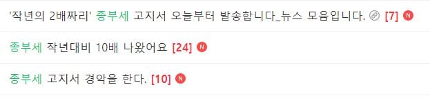 종부세 고지서를 받은 이들 중 상당수는 2배 이상 오른 종부세에 경악했다는 반응을 보이고 있다. 부동산 커뮤니티 등에도 종부세 관련 토로글들이 올라오고 있다.