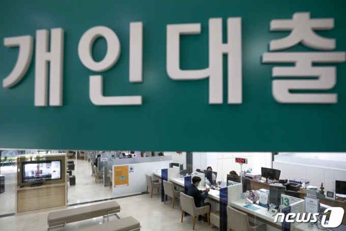| (서울=뉴스1) 성동훈 기자 = 29일 정부는 총부채원리금상환비율(DSR) 규제의 차주(대출받는 사람) 단위 적용을 점차 확대하고, 내년 가계부채 증가율을 코로나19 사태 이전인 4% 수준으로 끌어내리기로 했다. 과도한 대출 방지를 위해 개인별 DSR 40% 적용 대상을 단계적으로 확대해 가계부채를 안정적으로 관리하겠다는 정부의 방침에 따른 조치다. 개인별 DSR 40% 적용 범위는 내년 7월에는 총대출액 2억원 초과, 2023년 7월에는 총대출액 1억 초과 대출자로 확대된다. 사진은 이날 오후 서울의 한 은행 개인대출 창구 모습. 2021.4.29/뉴스1 |
